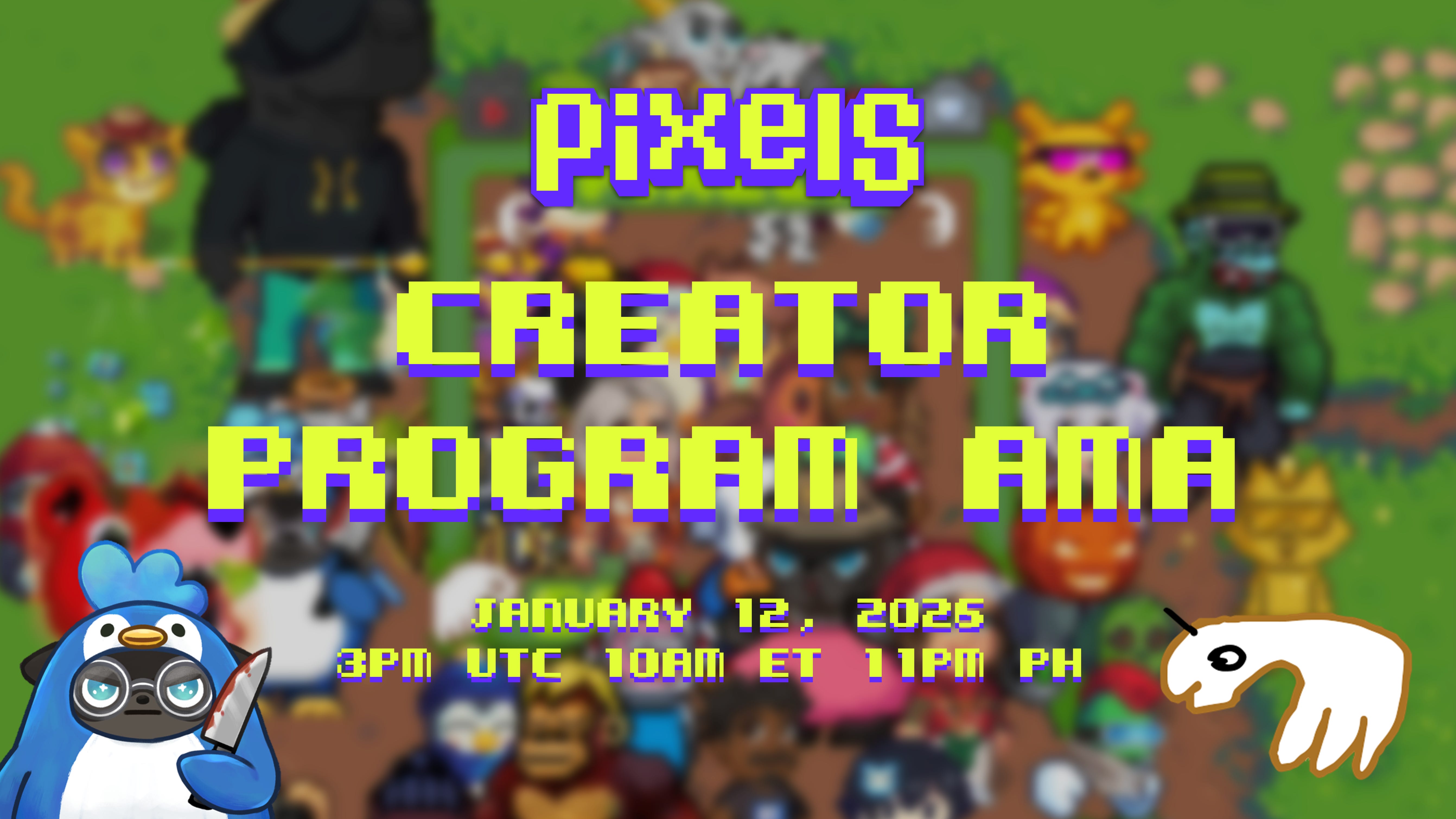 Want to learn more about the Pixels Content Creator program? Bring all of your questions and hear from the amazing creators who bring you fresh Pixels content on the daily ✨