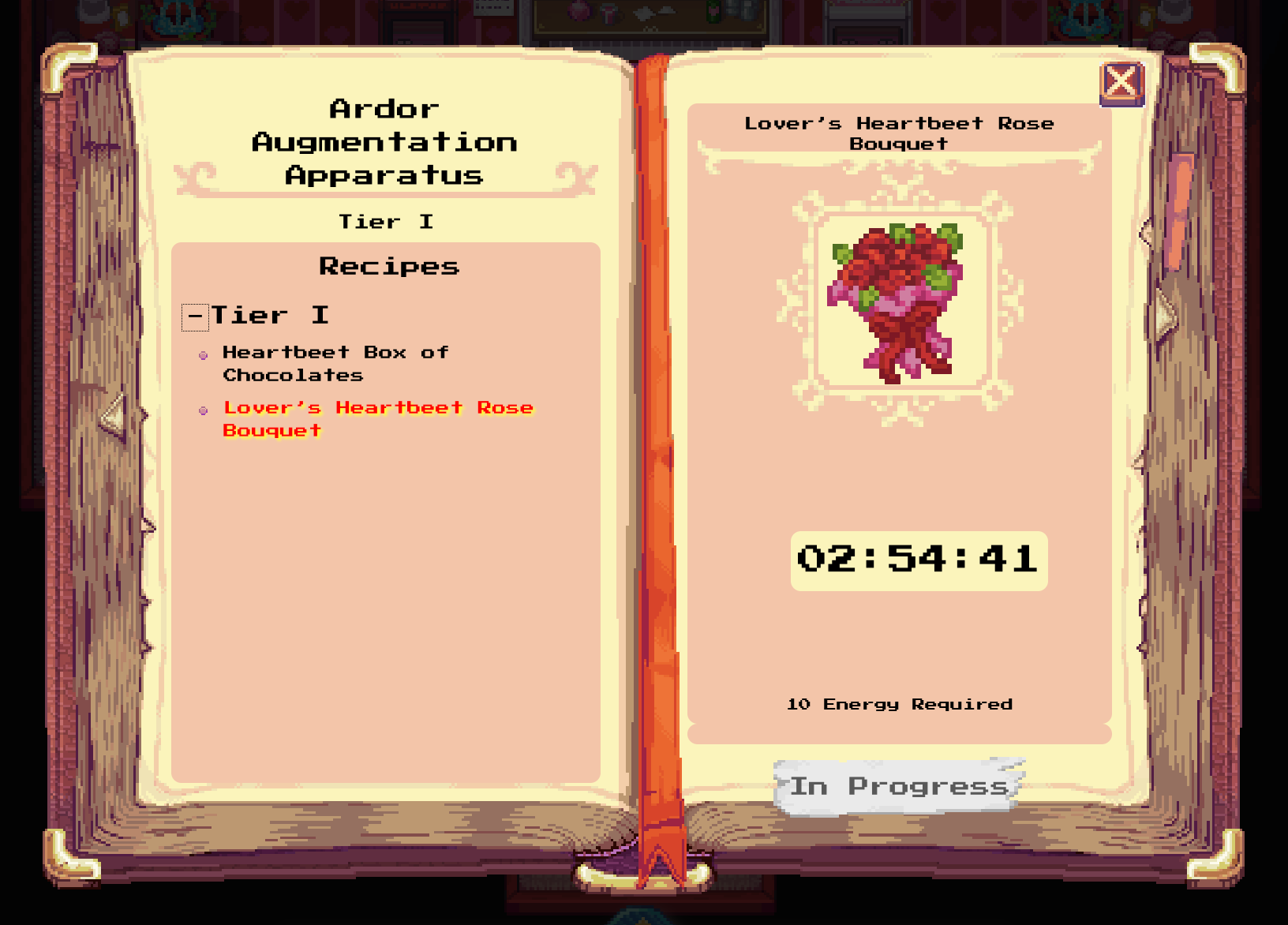 Make sure you’ve harvested your heartbeets, crafted your wines, and finished the quests! Reminder, it can take some hours to craft those roses and chocolates. Give yourself plenty of time to do so!