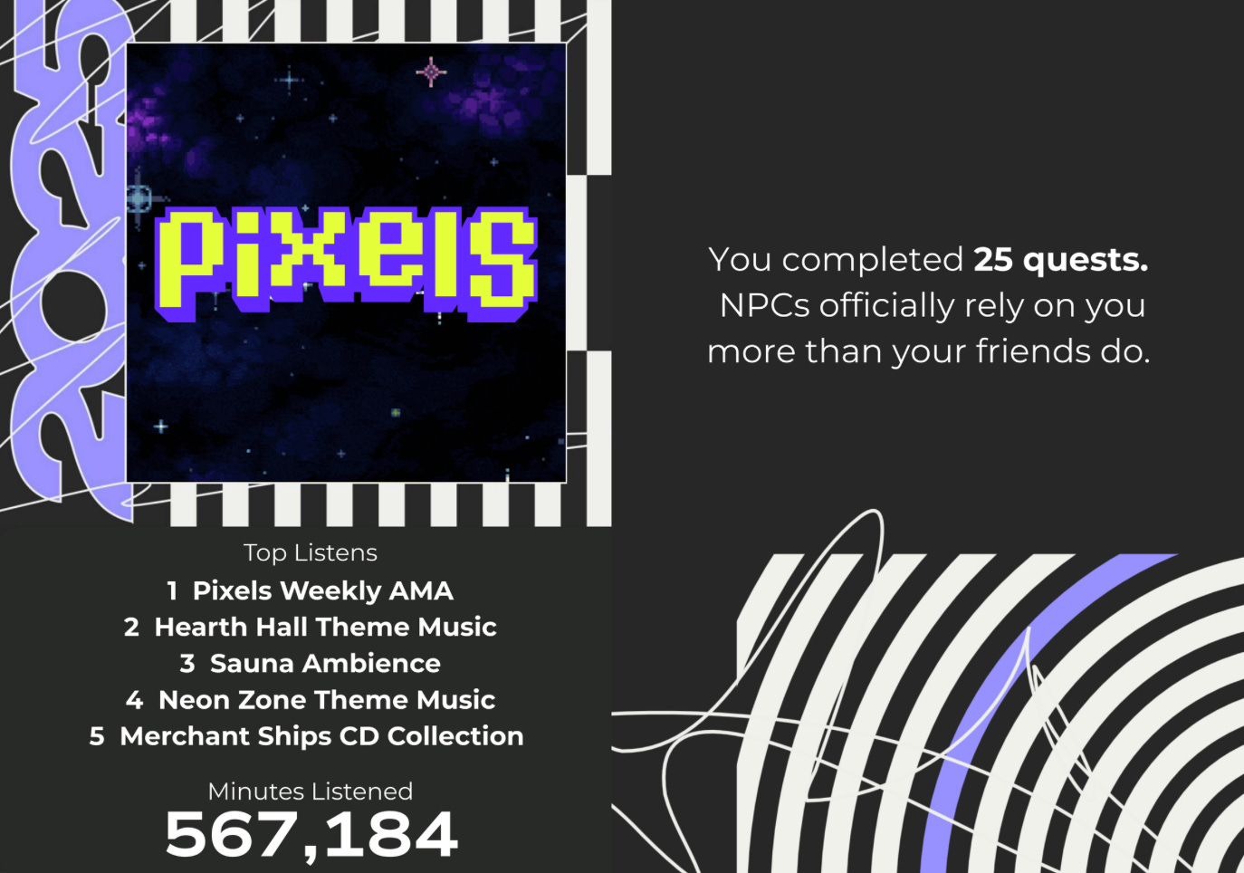 Check out the Pixels Wrapped at our X post here, and a huge thank you to all the dedicated Pixels players who helped make 2025 an amazing year!